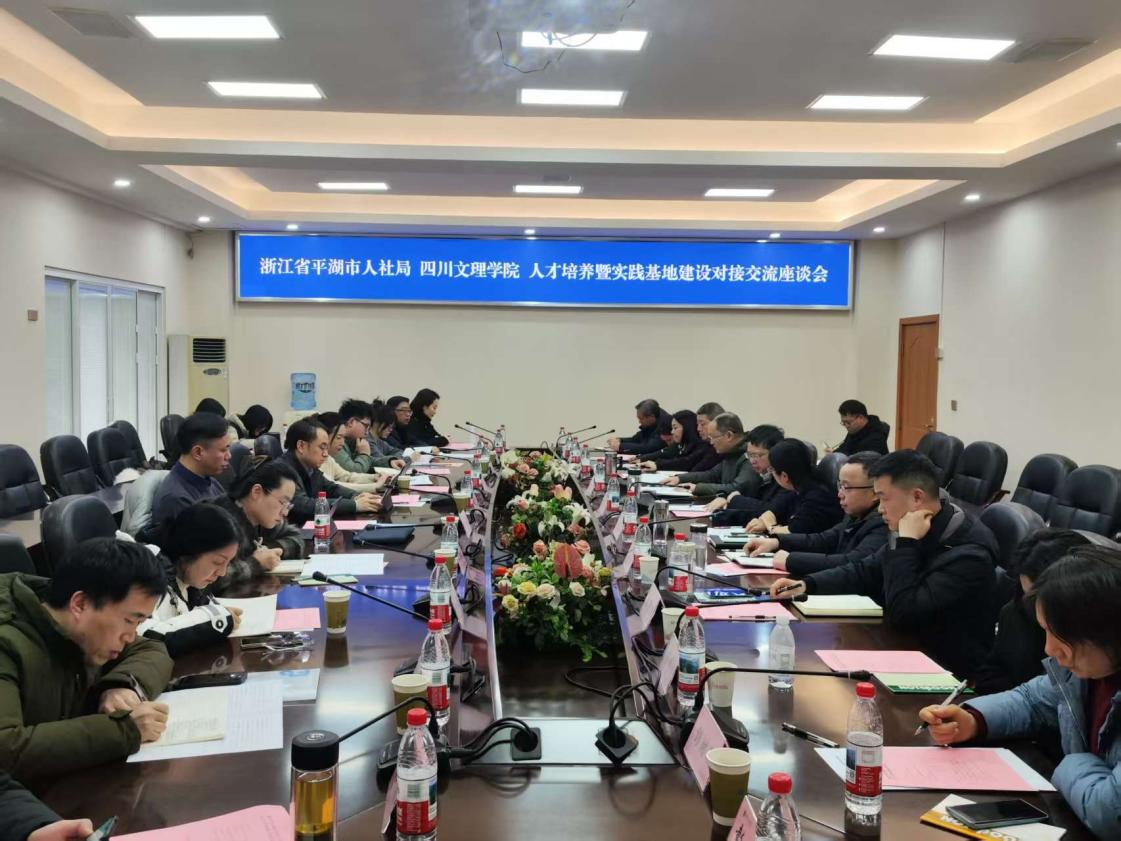 1月22日下午,四川文理学院与浙江省平湖市人力资源和社会保障局人才培养暨实践基地建设对接交流座谈会举行。平湖市人社局党委书记、局长朱磊,校长侯忠明,副校长熊兴中、陈光平出席会议,副校长程碧英主持会议。